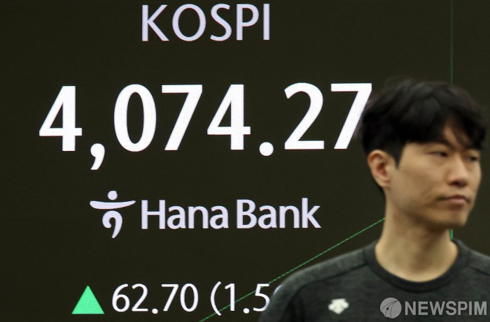 [서울=뉴스핌] 양윤모 기자 = 17일 오전 코스피가 전장 종가보다 62.70 포인트(1.58%) 상승하며 4074.27로, 코스닥은 6.72 포인트(0.75%) 상승한 904.62로 장을 시작한 가운데, 서울 중구 하나은행 딜링룸에서 직원들이 업무를 보고 있다. 서울외환시장에서 달러/원 환율은 전장 대비 3.20원 하락한 1453.80원에 거래를 시작했다. 2025.11.17 yym58@newspim.com