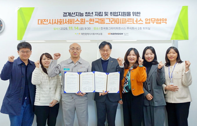 [대전=뉴스핌] 오영균 기자 = 대전시사회서비스원은 한국동그라미파트너스주식회사와 경계선 지능 청년 대상 일·경험 프로그램 운영을 위한 업무협약을 14일 체결했다고 17일 밝혔다.
