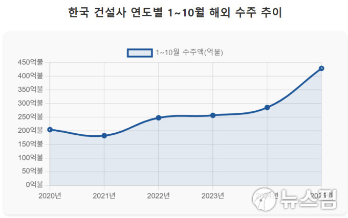 | 한국 건설사 연도별 1~10월 해외 수주 추이 [그래픽=AI 제작] |