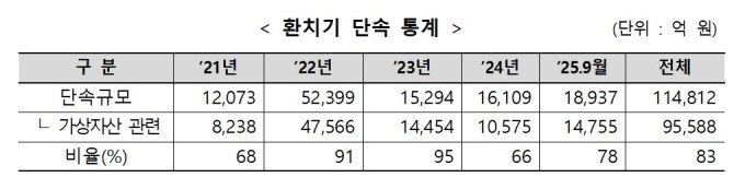 우선 불법송금의 대표격인 환치기 단속 강화에 나선다. 관세청의 최근 5년간 단속 실적에 따르면 환치기 규모는 약 11조원에 이르며, 이 중 가상자산을 이용한 비중이 83%를 차지했다.