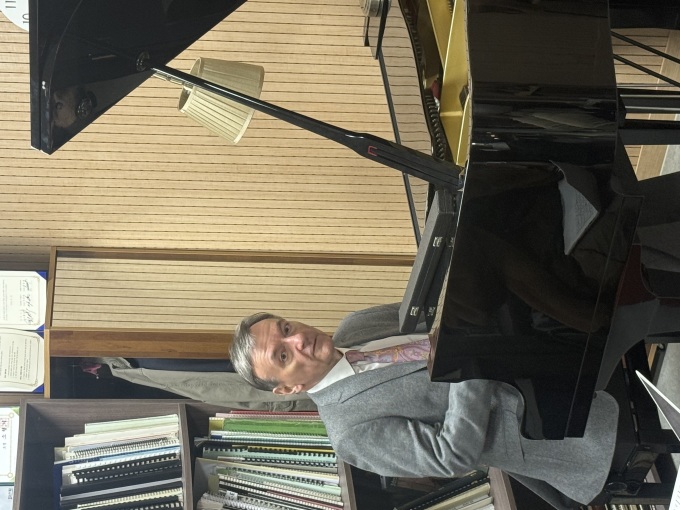 [서울=뉴스핌] 최문선 기자 = 피아노에서 작품 설명 중인 스티븐 허프 경. [사진=함신익과 심포니 송] 2025.11.18 moonddo00@newspim.com