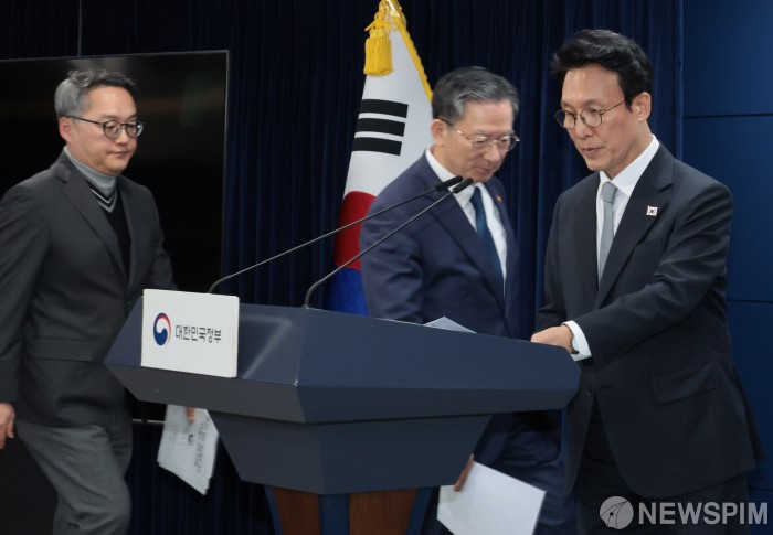 [서울=뉴스핌] 이길동 기자 = 김민석 국무총리와 정성호 법무부 장관이 18일 서울 종로구 정부서울청사에서 열린 론스타 ISDS 취소신청' 관련 긴급 브리핑을 위해 입장하고 있다.이날 브리핑에서 정부는 오늘 오후 3시 22분경 미국 동부 시간으로는 새벽 1시 22분경에 미국 워싱턴 D.C.에 있는 국제투자분쟁해결센터(ICSID)의 론스타 ISDS 취소위원회로부터 대한민국 승소 결정을 선고받았다고 발표 했다.2025.11.18 gdlee@newspim.com