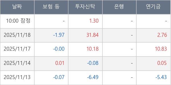 ※ 사모펀드 등 일부 기관의 순매매량은 표시되지 않음