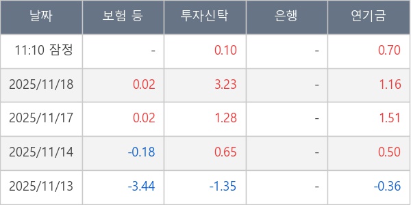 ※ 사모펀드 등 일부 기관의 순매매량은 표시되지 않음
