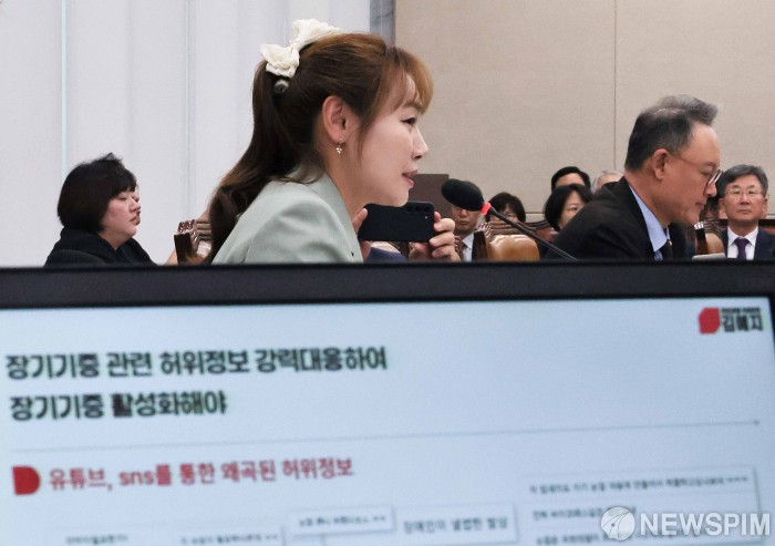| [서울=뉴스핌] 윤창빈 기자 = 김예지 국민의힘 의원이 지난달 22일 오전 서울 여의도 국회에서 열린 보건복지위원회의 한국보건산업진흥원 등에 대한 국정감사에서 질의하고 있다. 2025.10.22 pangbin@newspim.com |