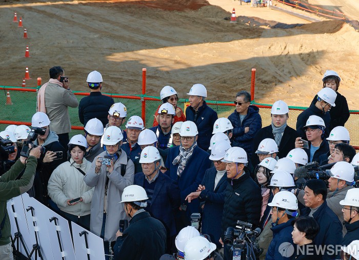 [서울=뉴스핌] 류기찬 기자 = 오세훈 서울시장이 19일 오후 서울 동작구 노량진6구역 재정비촉진지구 착공현장에 방문해 사업 추진 현황 브리핑을 받고 있다. 2025.11.19 ryuchan0925@newspim.com