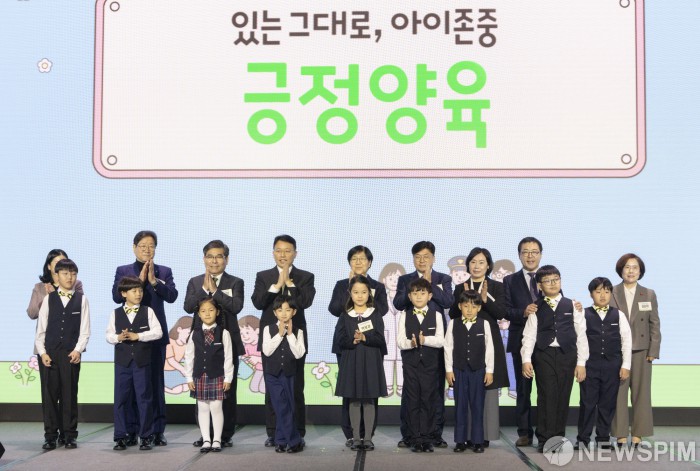 [서울=뉴스핌] 정은경 보건복지부 장관이 19일 서울 서초구 JW 메리어트 호텔에서 열린 제19회 아동학대예방의 날 기념식에서 참석자들과 기념촬영을 하고 있다. [사진=보건복지부] 2025.11.19 photo@newspim.com