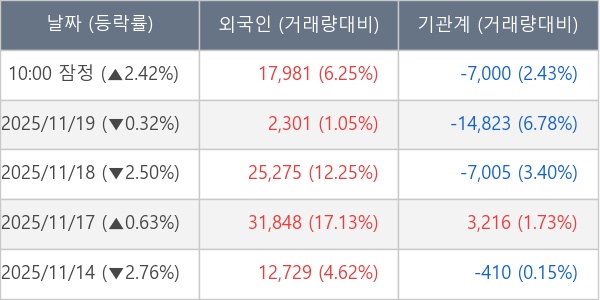 ※ 사모펀드 등 일부 기관의 순매매량은 표시되지 않음