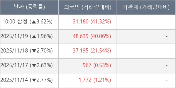 [표] 외국인ㆍ기관 순매매량 (단위 주)