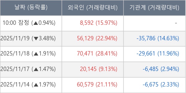 [표] 외국인ㆍ기관 순매매량 (단위 주)