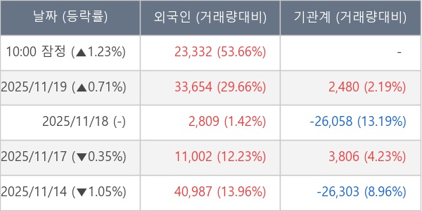 [표] 외국인ㆍ기관 순매매량 (단위 주)