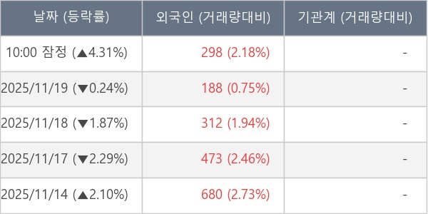 [표] 외국인ㆍ기관 순매매량 (단위 주)