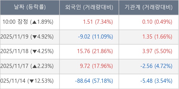 ※ 사모펀드 등 일부 기관의 순매매량은 표시되지 않음