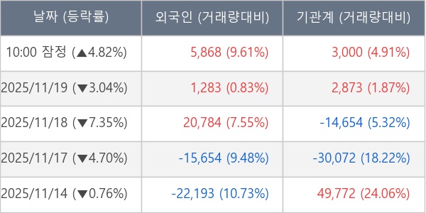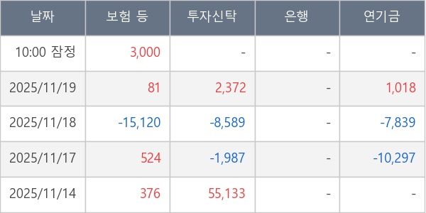 [표] 주요 기관별 순매매량 (단위 주)
