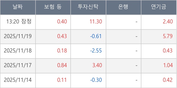 [표] 주요 기관별 순매매량 (단위 만주)