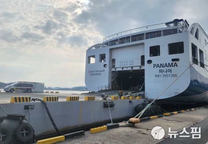 [광주=뉴스핌] 박진형 기자 = 20일 전남 목포항 삼학부두에 정박해 있는 여객선 '퀸제누비아2호'을 대상으로 수사 당국이 현장 감식을 실시하고 있다. 2025.11.20 bless4ya@newspim.com