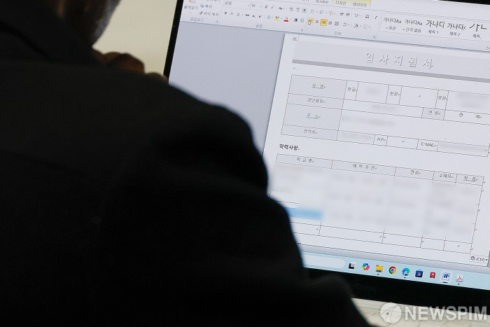 [서울=뉴스핌] 류기찬 기자 = 20일 오후 서울 강남구 세텍 서울무역전시장에서 열린 ‘외국인 취업·채용 박람회'에서 한 구직자가 이력서를 작성하고 있다. 2025.11.20 ryuchan0925@newspim.com