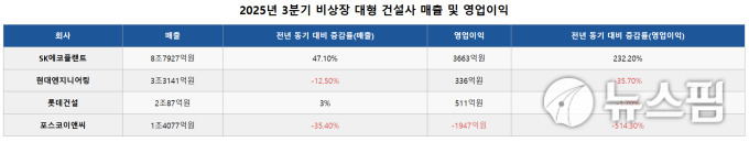 2025년 3분기 비상장 대형 건설사 매출 및 영업이익 [그래픽=AI 활용]