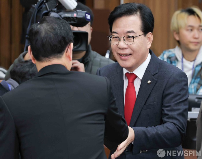 [서울=뉴스핌] 윤창빈 기자 = 송언석 국민의힘 원내대표가 21일 서울 여의도 국회에서 열린 원내대책회의에 참석하고 있다. 2025.11.21 pangbin@newspim.com