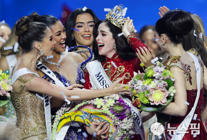 [방콕 로이터=뉴스핌] 최원진 기자= 미스 멕시코 파티마 보쉬(Fatima Bosch)가 21일 태국 방콕에서 열린 제74회 미스 유니버스 대회에서 '미스 유니버스'로 선정된 후 기뻐하고 있다. 2025.11.21 wonjc6@newspim.com