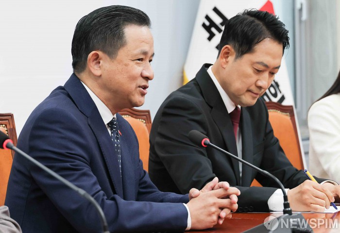 [서울=뉴스핌] 윤창빈 기자 = 다이빙 주한중국대사가 21일 서울 여의도 국회에서 장동혁 국민의힘 대표를 예방한 가운데 발언하고 있다. 2025.11.21 pangbin@newspim.com