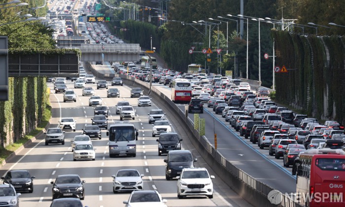 [서울=뉴스핌] 김민지 기자 = 추석인 10일 오후 서울 서초구 잠원IC 부근 경부고속도로 상하행선이 늘어난 차량들로 정체를 빚고 있다. 2022.09.10 kimkim@newspim.com