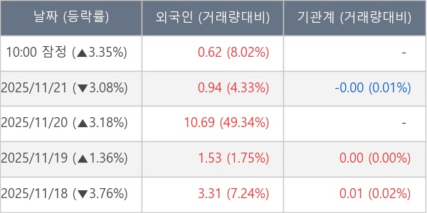 [표] 외국인ㆍ기관 순매매량 (단위 만주)