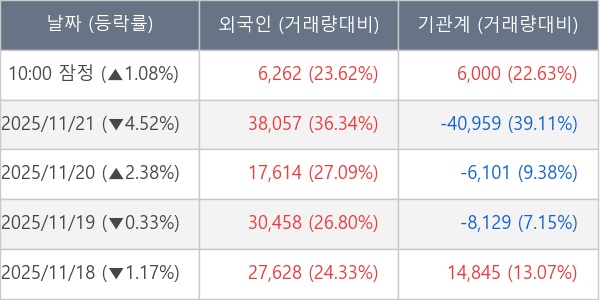 ※ 사모펀드 등 일부 기관의 순매매량은 표시되지 않음
