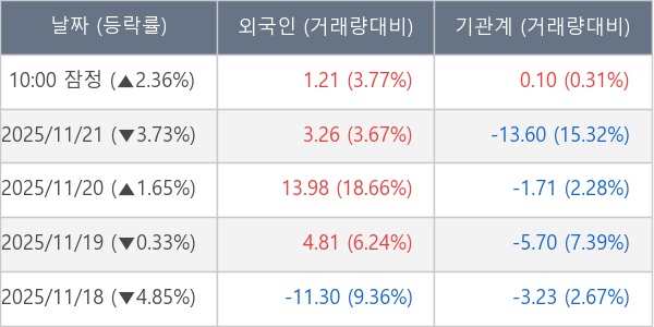 ※ 사모펀드 등 일부 기관의 순매매량은 표시되지 않음