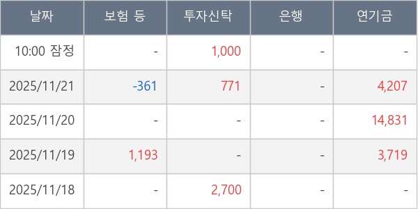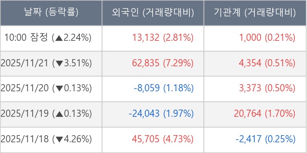 ※ 사모펀드 등 일부 기관의 순매매량은 표시되지 않음