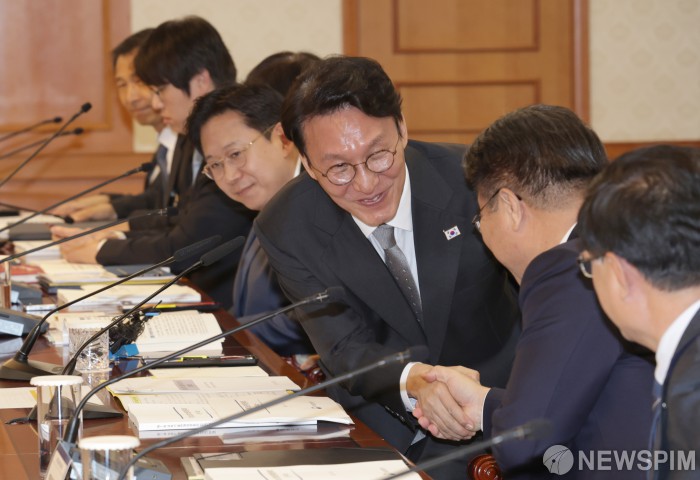 [서울=뉴스핌]이길동 기자 =김민석 국무총리가 24일 서울 종로구 정부서울청사에서 열린 과학기술관계장관회의에 입장하고 있다.2025.11.24 gdlee@newspim.com