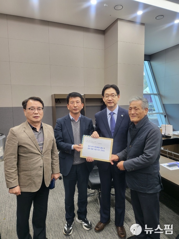 완주-전주통합반대 완주군민대책위원회 송병주 상임대표와 전북특별자치도의회 권요안 의원, 이돈승 자문위원은 지방시대위원회 김경수 위원장에게 '완주-전주 행정통합 철회 및 관련 법령 개정 촉구 건의문'을 공식 전달했다고 24일 밝혔다.