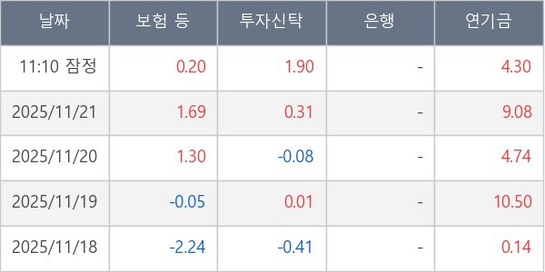 [표] 주요 기관별 순매매량 (단위 만주)
