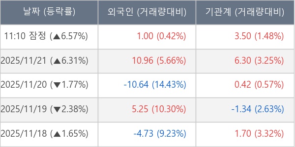 ※ 사모펀드 등 일부 기관의 순매매량은 표시되지 않음