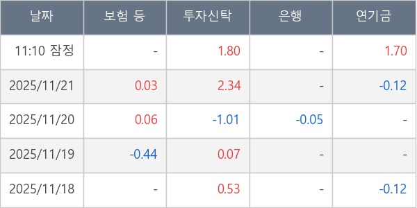 [표] 주요 기관별 순매매량 (단위 만주)