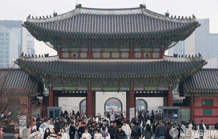 [서울=뉴스핌] 류기찬 기자 = 중일 갈등으로 중국 정부가 자국민에게 일본 여행·유학 등 자제령을 내리면서 한국이 대체 여행지로 각광 받고 있다. 24일 오전 서울 종로구 경복궁이 중국인 관광객들로 붐비고 있다. 2025.11.24 ryuchan0925@newspim.com