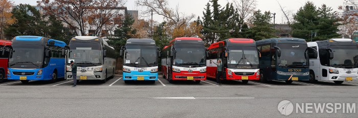 [서울=뉴스핌] 류기찬 기자 = 중일 갈등으로 중국 정부가 자국민에게 일본 여행·유학 등 자제령을 내리면서 한국이 대체 여행지로 각광 받고 있다. 24일 오전 서울 종로구 경복궁 주차장에 관광객들의 전세버스가 주차되어 있다. 2025.11.24 ryuchan0925@newspim.com