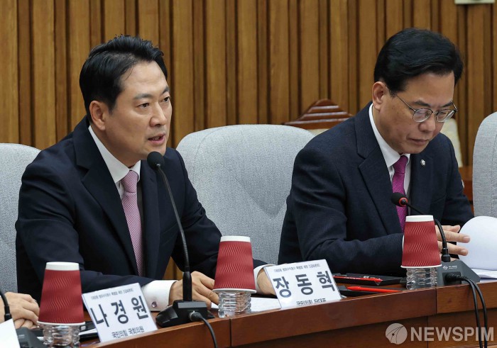 [서울=뉴스핌] 윤창빈 기자 = 장동혁 국민의힘 대표가 24일 서울 여의도 국회에서 열린 대장동 범죄수익환수 특별법 제정을 위한 긴급 토론회에서 인사말을 하고 있다. 2025.11.24 pangbin@newspim.com