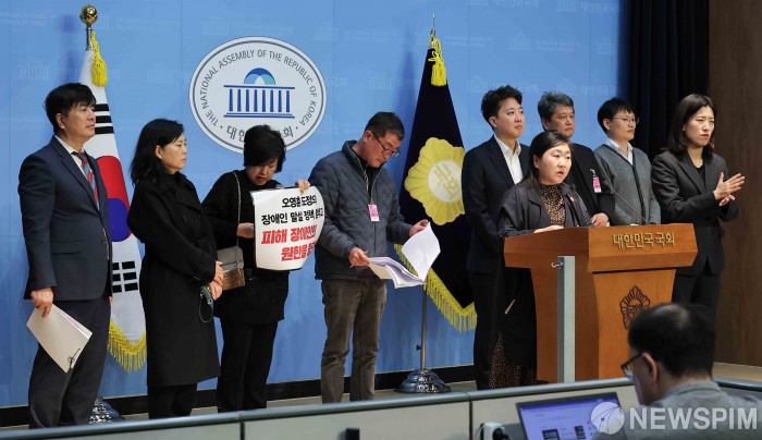 [서울=뉴스핌] 윤창빈 기자 = 이준석 개혁신당 대표가 24일 서울 여의도 국회에서 중증장애인시설인 사랑의집과 관련 피해자 및 관계자들과 함께 기자회견을 하고 있다.2025.11.24 pangbin@newspim.com