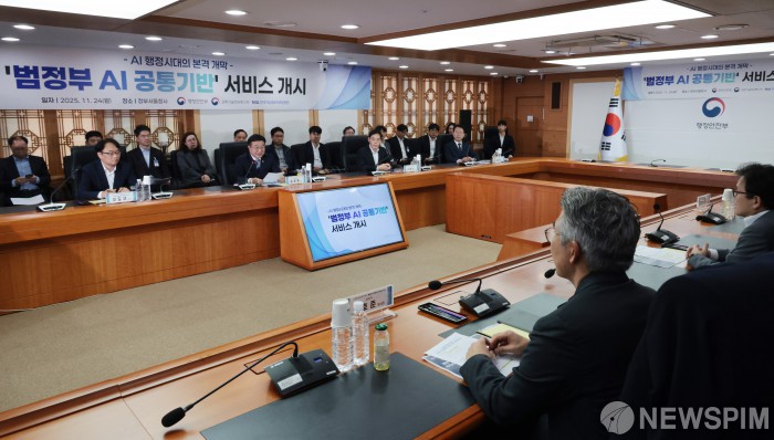 [서울=뉴스핌] 이길동 기자 = 윤호중 행정안전부 장관이 24일 서울 종로구 정부서울청사에서 열린 범정부 AI 공통기반 서비스 개시 기념식에서 인사말을 하고 있다. 2025.11.24 gdlee@newspim.com
