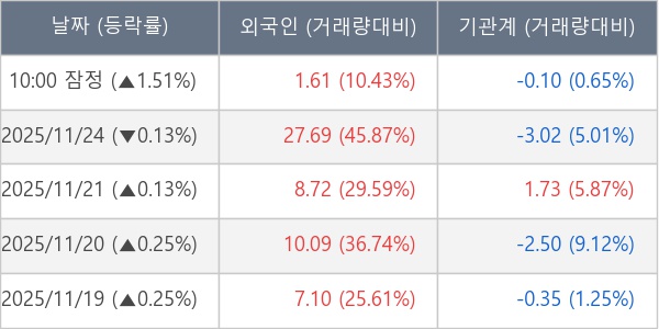※ 사모펀드 등 일부 기관의 순매매량은 표시되지 않음