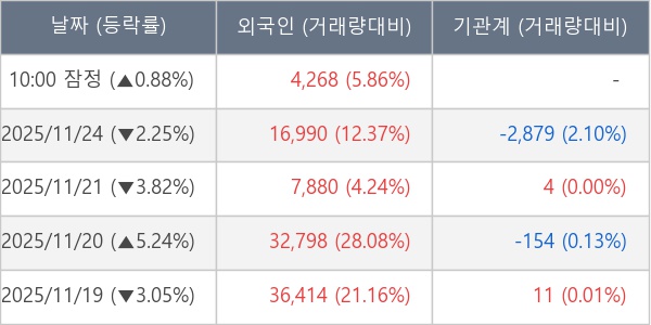[표] 외국인ㆍ기관 순매매량 (단위 주)