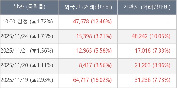 [표] 외국인ㆍ기관 순매매량 (단위 주)