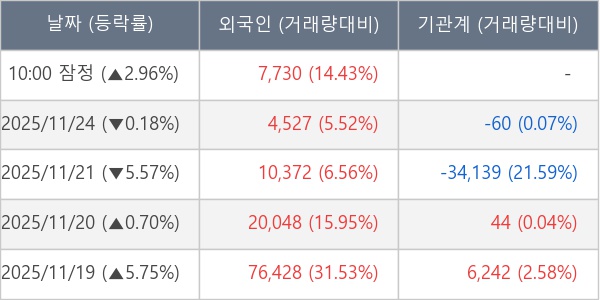 [표] 외국인ㆍ기관 순매매량 (단위 주)