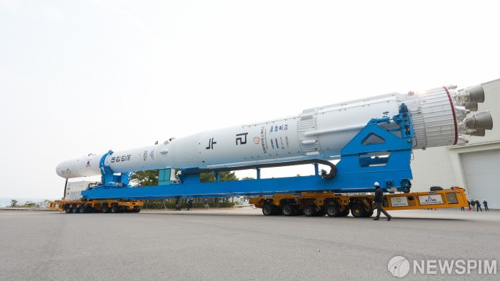[서울=뉴스핌] 25일 오전 전남 고흥 나로우주센터에서 누리호가 조립동을 나와 발사대로 출발하고 있다. [사진=한국항공우주연구원] 2025.11.25 photo@newspim.com