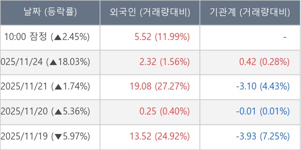 [표] 외국인ㆍ기관 순매매량 (단위 만주)