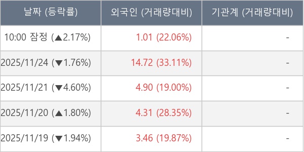 [표] 외국인ㆍ기관 순매매량 (단위 만주)