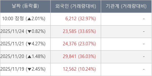 [표] 외국인ㆍ기관 순매매량 (단위 주)