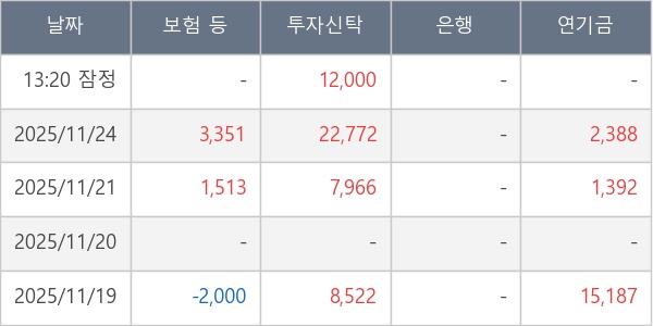 [표] 주요 기관별 순매매량 (단위 주)