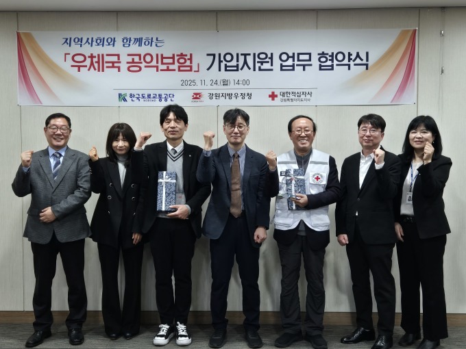 [원주=뉴스핌] 이형섭 기자 = 강원지방우정청과 한국도로교통공단, 대한적십자사 강원특별자치도지사가 플랫폼 경제운송업 종사자의 복지 사각지대를 메우기 위해 손을 맞잡았다.